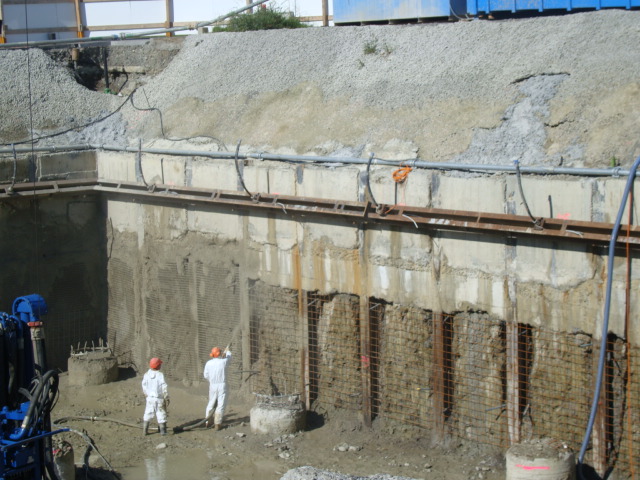 Für die Baugrube kamen verankerte Rühlwände im Westen und Süden sowie gesicherte Spritzbetonböschungen im Norden und Osten zum Einsatz. Das Grundwasser wurde über eine Wellpointanlage abgesenkt und über ein zweikammeriges Absetzbecken abgeleitet. Aufgrund subartesischer Spannungen waren zusätzliche Wellpointstränge erforderlich, um ein Aufstossen des Grundwassers zu verhindern.