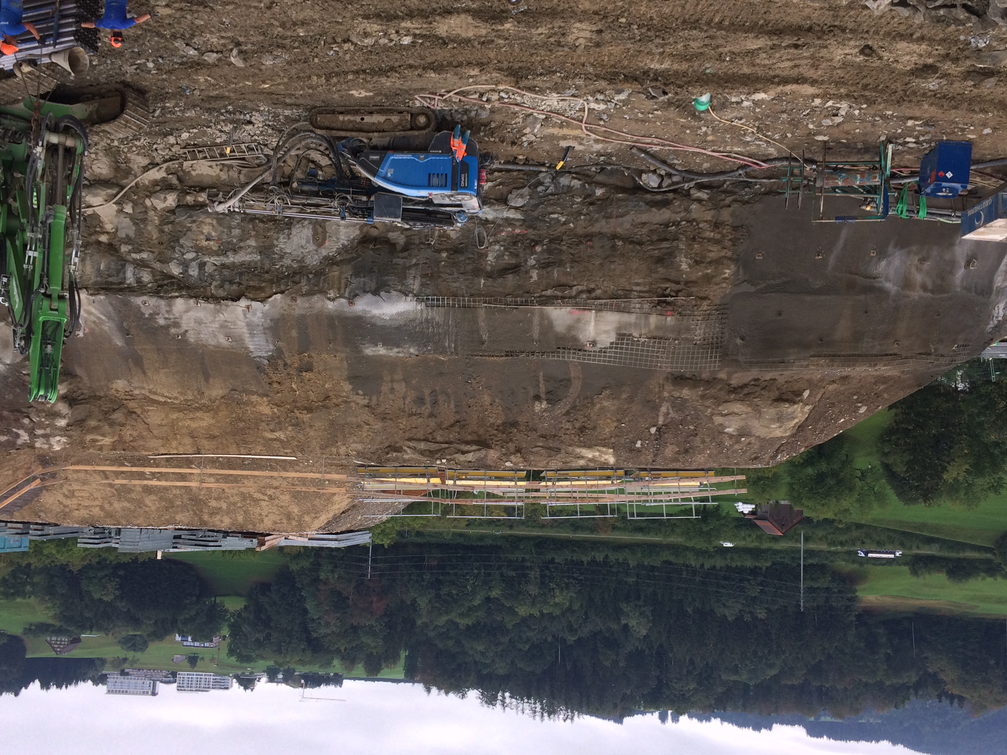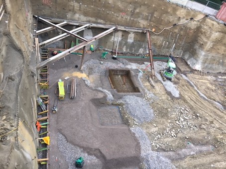 Die Fundation erfolgte überwiegend als Flachgründung in harter Grundmoräne und Molassefels. Unter den Bodenplatten wurde ein Kieskissen als Ausgleichsschicht eingebracht. In Bereichen mit weniger tragfähiger Moräne wurde das Material durch verdichtungsfähigen Kies ersetzt. Wo hohe Gebäudelasten punktuell auftraten, kamen zusätzlich lokale Magerbetontatzen direkt auf dem Fels zum Einsatz.