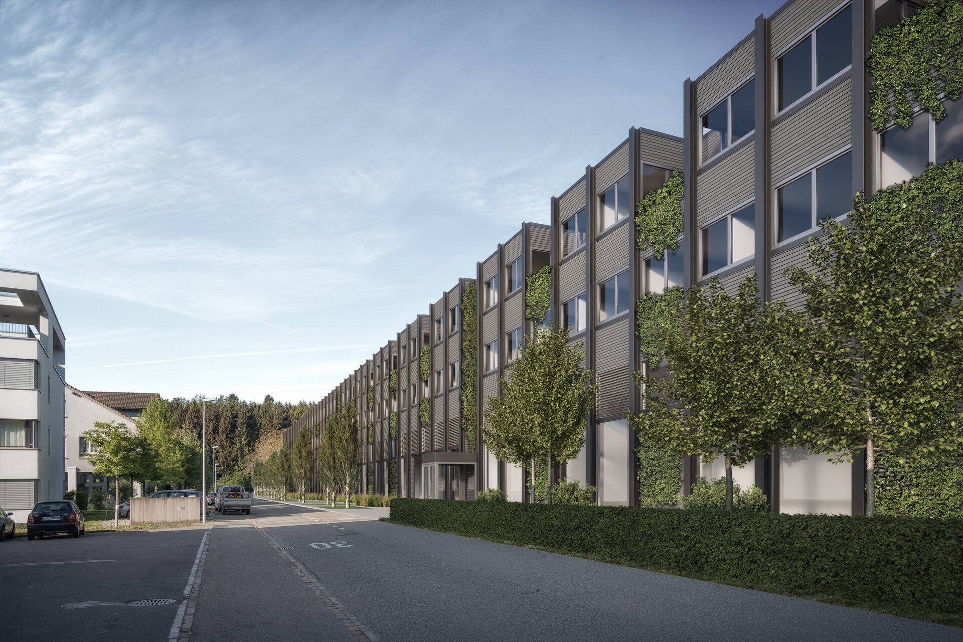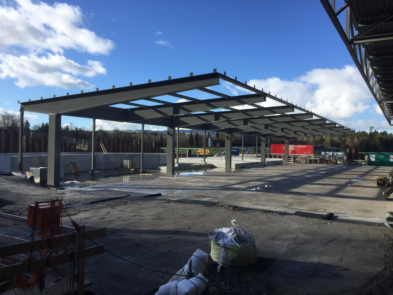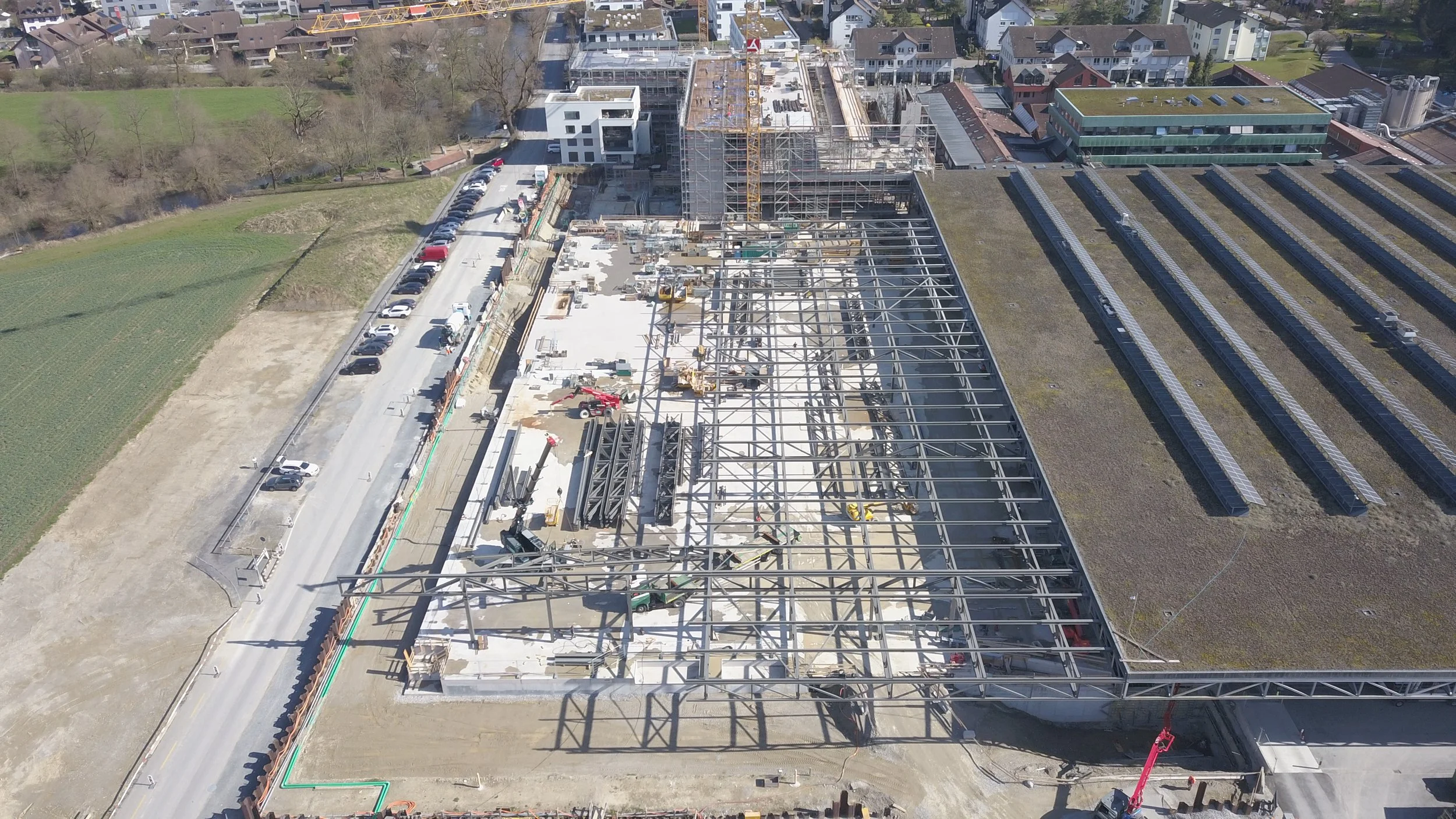 Unter Terrain entstand eine mehrgeschossige Autoeinstellhalle in wasserdichter Bauweise, direkt angebunden an das bestehende Gebäude. Die Produktionshalle wurde nach Norden erweitert, inklusive eines neuen, tieferliegenden Wabenlagers. Das Hallendach wurde als Fortsetzung der bestehenden Stahlkonstruktion ausgeführt.