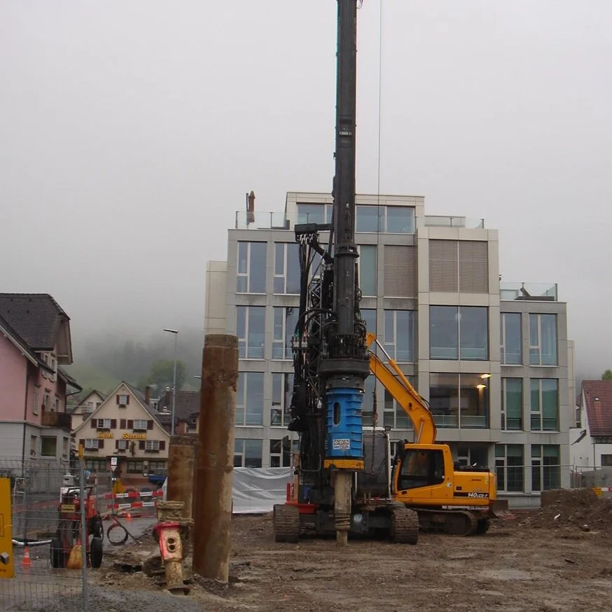Das Gebäude ist als Stahlbeton-Massivbau mit Skelettkonstruktion realisiert. Die Fundation erfolgt über Bohrpfähle, die in den Molassefels eingebunden sind und dank einer steifen Bodenplatte minimale Setzungen gewährleisten. Die Pfähle wurden als Zugpfähle ausgebildet, um den Baukörper auch während der Erstellung sicher gegen Auftrieb zu halten.